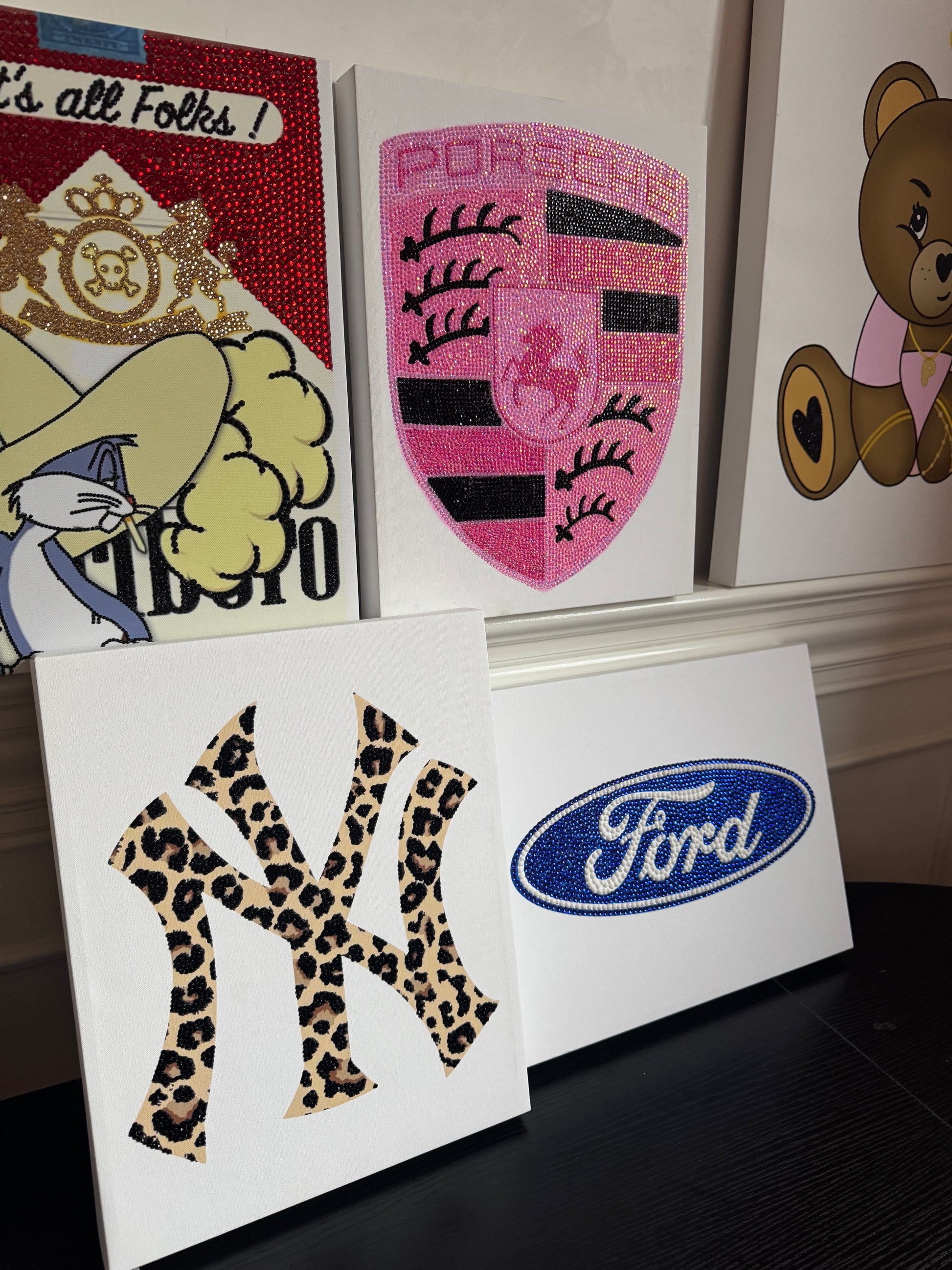 Comes with all the materials and a pre done canvas with the design you want for you to bedazzle you self!!!!